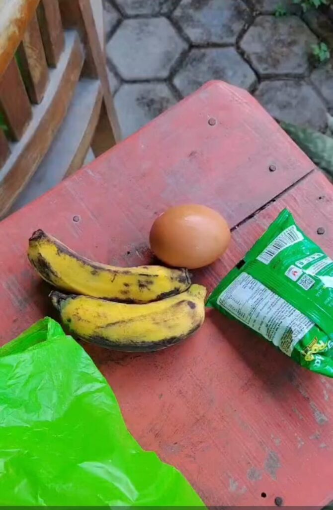 Menu yang diterima balita pada pagi hari itu hanya berupa satu butir telur rebus, dua buah pisang raja, dan satu bungkus kacang telur rosta, yang diperkirakan hanya bernilai sekitar Rp5.000. Padahal, pemerintah telah menetapkan standar anggaran dan komposisi gizi yang harus dipenuhi oleh setiap SPPG melalui regulasi Badan Gizi Nasional (BGN).