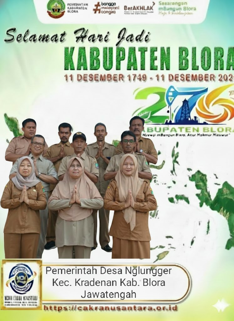 BLORA – MEDIA CAKRA NUSANTARA,-Pemerintah Desa Nglungger, Kecamatan Kradenan, Kabupaten Blora, turut serta merayakan Hari Jadi Kabupaten Blora yang ke-276, yang diperingati pada 11 Desember 2025. Peringatan tahun ini mengusung tema “Nyawiji Mbangun Blora, Akur Makmur Misuwur” sebagai wujud semangat kebersamaan dalam membangun daerah.